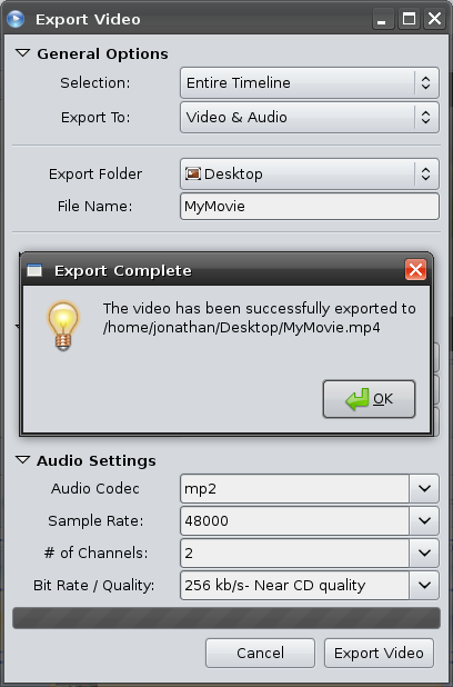 - The export screen no longer auto-closes. It stays open, so you don't loose your settings. It lets the user double check the exported video... tweak any settings, and export again.